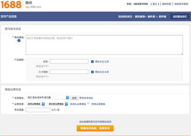 填写完以上所有信息,就可以点击“同意协议条款,我要发布”按钮,将商品发布。